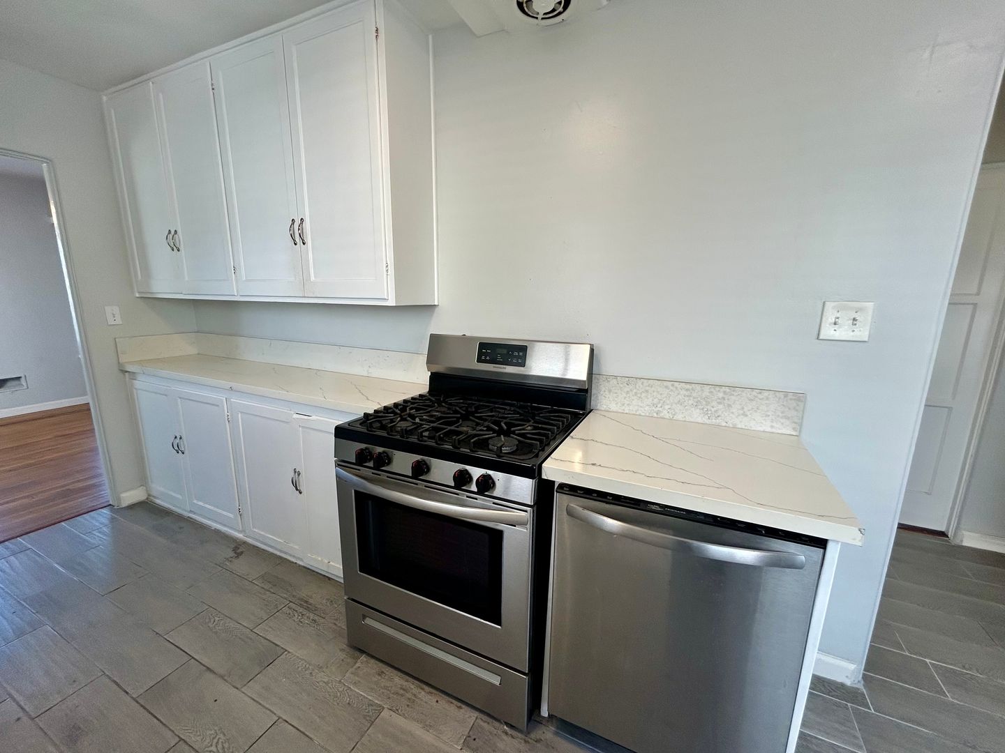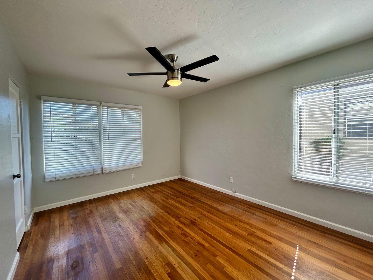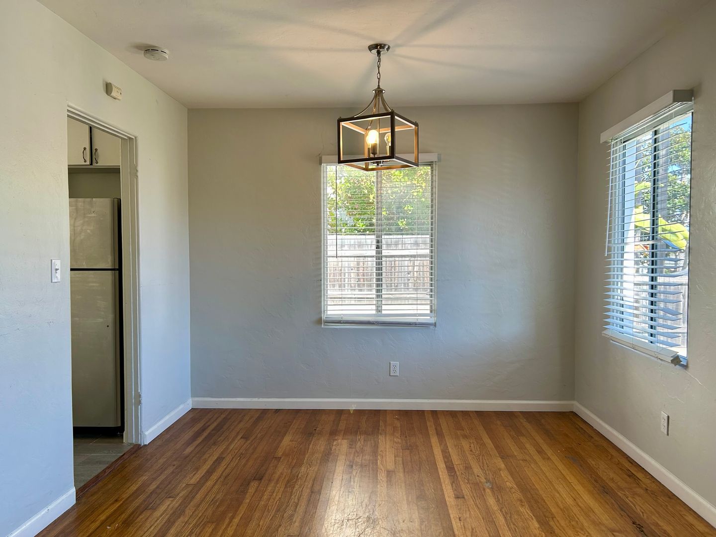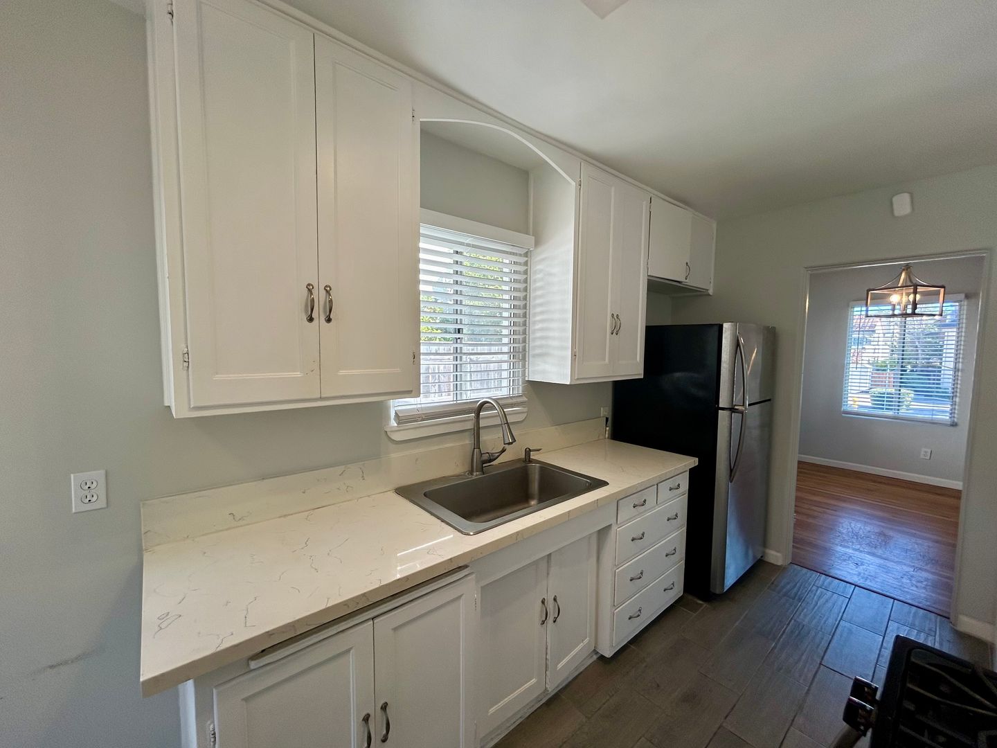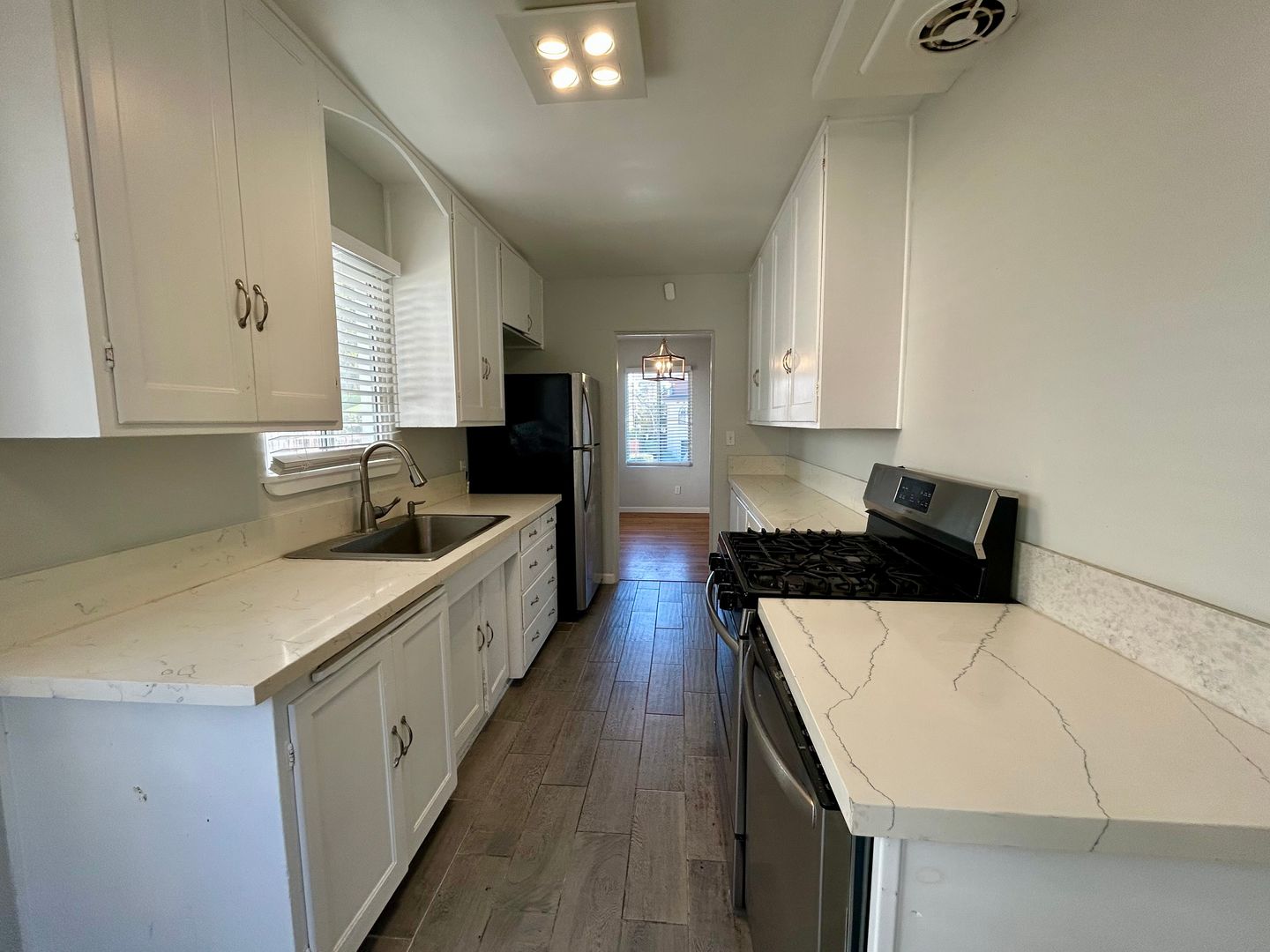 3 Bedroom 1 Bath Charmer in PB! New Paint, Re-finished floors, a stainless appliance suite (refrigerator, gas range, dishwasher), quartz countertops. The home is walking distance to Vons, Trader Joe's and Kate Sessions Park. Easy access to the beaches and to the freeway for commuting. The home is a five minute downhill bike ride to the beach but far enough removed from the bars and restaurants when you need some peace and quiet. The home has hardwood floors but tile in kitchen and bathroom. Each bedroom has a spacious walk-in closet for clothing and storage. In addition, the home also has a linen closet and storage closet for additional storage needs. The rental includes two off-street parking spots, one is compact and has been used as an outdoor patio space. Kitchen is galley-style with a breakfast nook area.