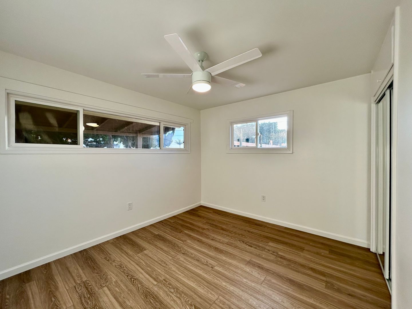 2 bed, 1 bath with Enclosed Patio in the Heart of Clairemont with 1 Car Garage. Close to Everything: shopping, restaurants, schools, freeways, mission bay, etc. New Paint, New Appliances, and Flooring. New low maintenance backyard with concrete and turf, New interior/exterior paint, dual pane windows, and new ceiling fans/lights. Remodeled Bathroom. Water & Trash Included!