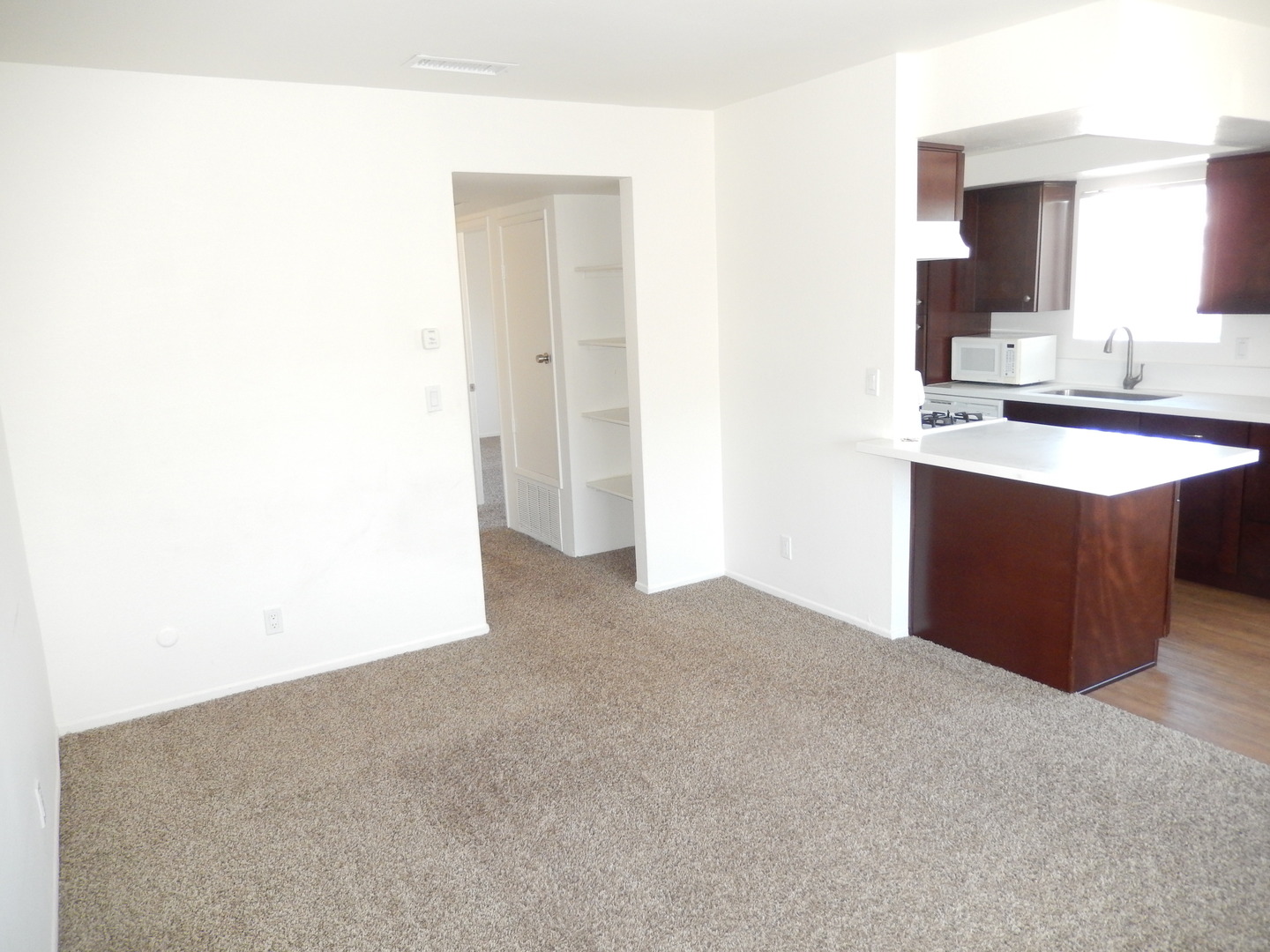 KITCHEN FEATURES: New Paint and New Carpet. Newer cabinets, counters, sink, and faucet. Ref and stove.
